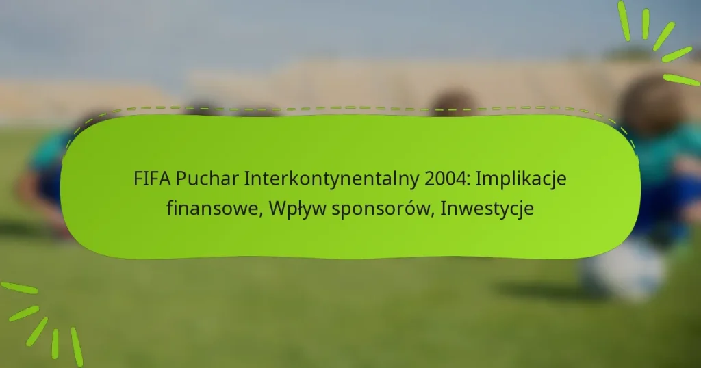 Puchar Interkontynentalny FIFA 2004 miał głęboki wpływ na krajobraz finansowy interesariuszy, wpływając na sprzedaż biletów, prawa do transmisji oraz przychody z towarów. Sponsoring odegrał kluczową rolę w zwiększaniu widoczności marki i generowaniu znacznych przychodów, podczas gdy znaczne inwestycje zostały poczynione w celu poprawy infrastruktury i działań marketingowych, co ostatecznie przyniosło korzyści lokalnej gospodarce i zapewniło sukces wydarzenia. Key sections in the article: Toggle Jakie były implikacje finansowe Pucharu Interkontynentalnego FIFA 2004? Przychody z sprzedaży biletów Przychody z praw do transmisji…