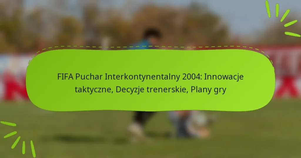 Puchar Interkontynentalny FIFA 2004 uwydatnił szereg innowacji taktycznych, które zmieniły podejście do meczów, z zespołami wykorzystującymi różnorodne formacje i strategie pressingu. Decyzje trenerskie odegrały kluczową rolę w kształtowaniu dynamiki zespołu i ogólnej wydajności, ponieważ strategiczny dobór zawodników i zmiany bezpośrednio wpływały na wyniki. Plan gry każdego zespołu był starannie opracowany, aby wykorzystać ich mocne strony, jednocześnie adresując słabości przeciwników, co podkreśla znaczenie szczegółowej analizy i elastyczności w rywalizacji na wysokim poziomie. Key sections in the article: Toggle Jakie były innowacje…