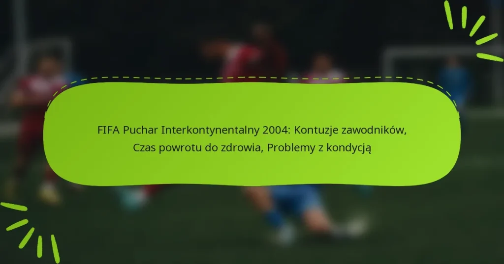Puchar Interkontynentalny FIFA 2004 był świadkiem wielu kluczowych zawodników, którzy doznali kontuzji, co miało głęboki wpływ na wyniki ich drużyn. Kontuzje te, obejmujące naciągnięcia mięśni i zerwania więzadeł, skutkowały różnymi czasami powrotu do zdrowia i wyzwaniami związanymi z kondycją, co ostatecznie wpłynęło zarówno na poszczególnych sportowców, jak i na ogólną dynamikę drużyn. Key sections in the article: Toggle Jakie były kluczowe kontuzje zawodników podczas Pucharu Interkontynentalnego FIFA 2004? Lista kontuzjowanych zawodników i ich kontuzji Okoliczności związane z każdą kontuzją Wpływ…