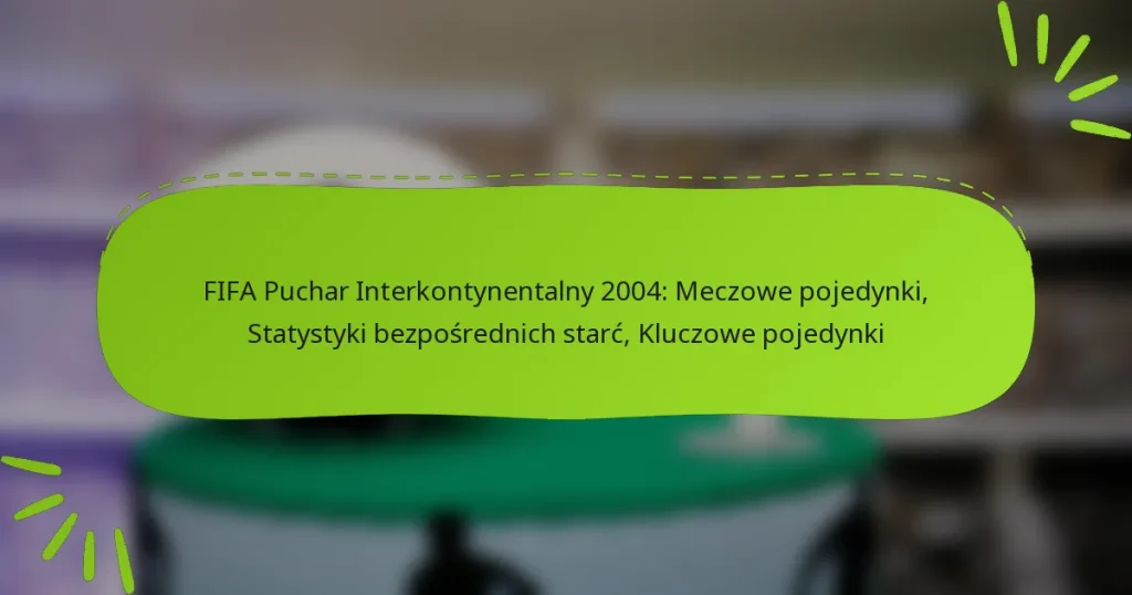 Puchar Interkontynentalny FIFA 2004 był naznaczony kluczowymi pojedynkami zawodników, które odegrały istotną rolę w określeniu wyniku meczu. To starcie między mistrzami Europy a Ameryki Południowej podkreśliło ich rywalizację i zawierało kluczowe pojedynki, które ukazały indywidualny talent, wpływając jednocześnie na strategie taktyczne. Statystyki bezpośrednich starć dostarczyły informacji na temat ich występów, ujawniając dynamikę ich bilansu zwycięstw i porażek oraz ogólnych możliwości na boisku. Key sections in the article: Toggle Jakie były kluczowe pojedynki zawodników w Pucharze Interkontynentalnym FIFA 2004? Metryki wydajności…