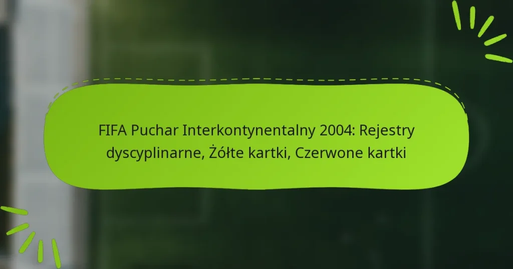 Puchar Interkontynentalny FIFA 2004 charakteryzował się wysokim poziomem działań dyscyplinarnych, z wieloma żółtymi i czerwonymi kartkami wpływającymi na dostępność zawodników oraz przebieg meczów. Wydawanie żółtych kartek podkreślało intensywność rywalizacji w turnieju, podczas gdy dwie czerwone kartki miały znaczący wpływ na dynamikę gier oraz ogólną narrację wydarzenia. Key sections in the article: Toggle Jakie są rekordy dyscyplinarne Pucharu Interkontynentalnego FIFA 2004? Przegląd działań dyscyplinarnych podczas turnieju Znaczące incydenty i kontrowersje Wpływ na wyniki meczów Porównanie z innymi turniejami Kluczowe statystyki dotyczące…