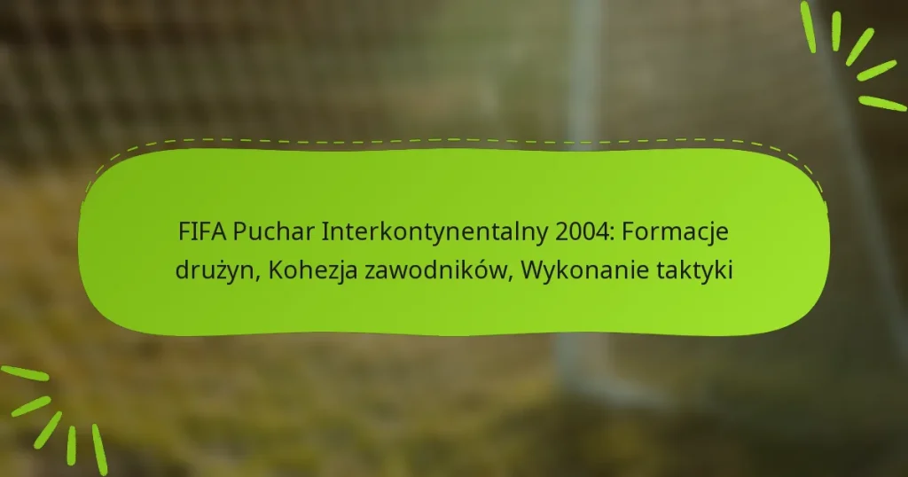 Puchar Interkontynentalny FIFA 2004 podkreślił znaczenie formacji zespołowych w kształtowaniu strategii taktycznych rywalizujących drużyn. Spójność zawodników odegrała kluczową rolę w poprawie współpracy i ułatwieniu skutecznej realizacji taktyki, co ostatecznie wpłynęło na wyniki meczów. Turniej zaprezentował różnorodne podejścia taktyczne, z drużynami dostosowującymi swoje strategie, aby zoptymalizować wyniki przeciwko rywalom. Key sections in the article: Toggle Jakie formacje zespołowe były używane w Pucharze Interkontynentalnym FIFA 2004? Przegląd formacji zespołowych dla każdego meczu Analiza przewag taktycznych konkretnych formacji Porównawcza skuteczność używanych formacji Wpływ…