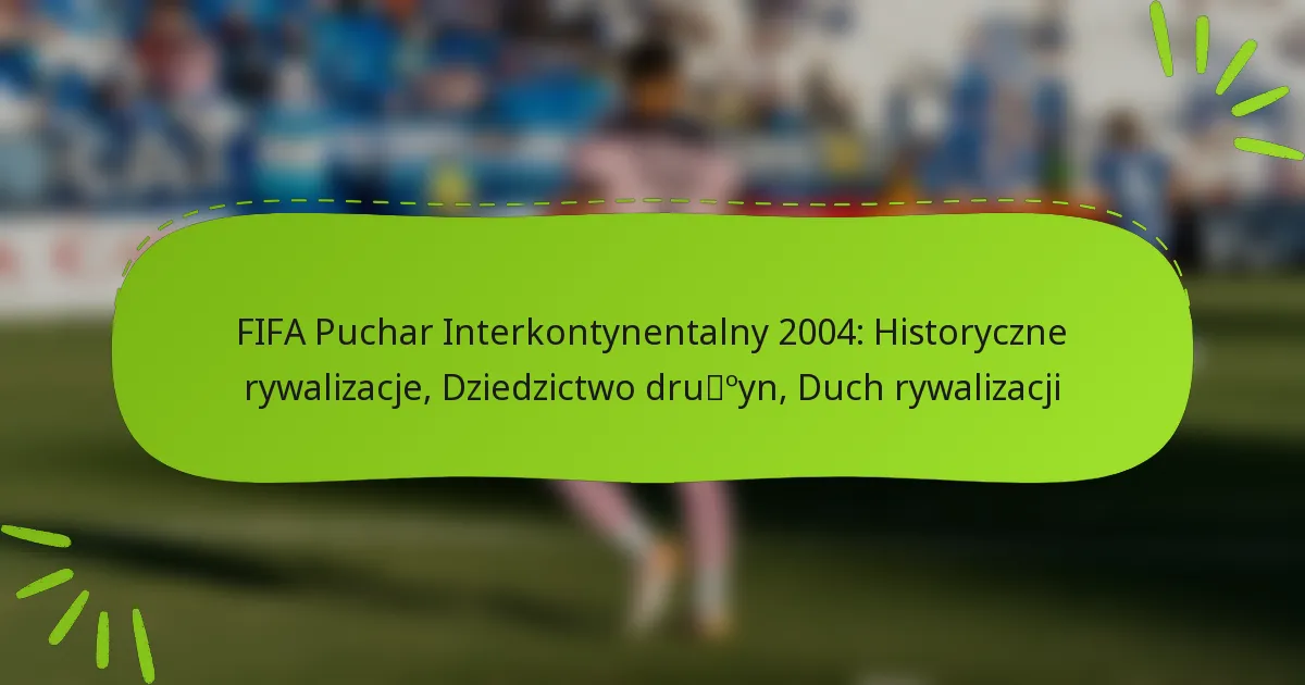 Puchar Interkontynentalny FIFA 2004 podkreślił intensywne historyczne rywalizacje między klubami z Europy i Południowej Ameryki, szczególnie konfrontację między FC Porto a kolumbijskim klubem Once Caldas. Te rywalizacje nie tylko podkreśliły ducha rywalizacji turnieju, ale także zaprezentowały dziedzictwo zaangażowanych drużyn, przyciągając pasjonujących kibiców i tworząc niezapomniane momenty w historii piłki nożnej.
