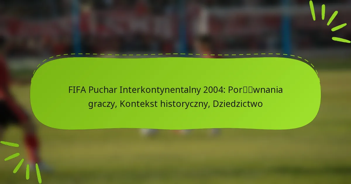 Porównując Puchar Interkontynentalny 2004 z kolejnymi turniejami, widać, że format i krajobraz konkurencyjny ewoluowały znacząco. Wprowadzenie FIFA Club World Cup w 2005 roku oznaczało przesunięcie w kierunku bardziej zorganizowanego i rozszerzonego formatu turnieju.